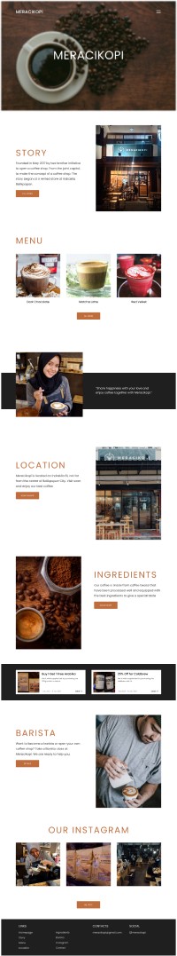 People don’t see Meracikopi as just “another coffee shop” among hundreds of coffee shops in Balikpapan. Having a website showing that Meracikopi is serious and professional. Showing the vibe and feel of 1 of their beautiful outlet located in Indrakila, Balikpapan.