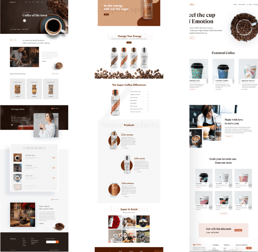 To better understand how the client wants the website to look, I looked at several website design references with a minimalist, clean look, and featuring a coffee shop brand. And here are some reference designs favored by the client.